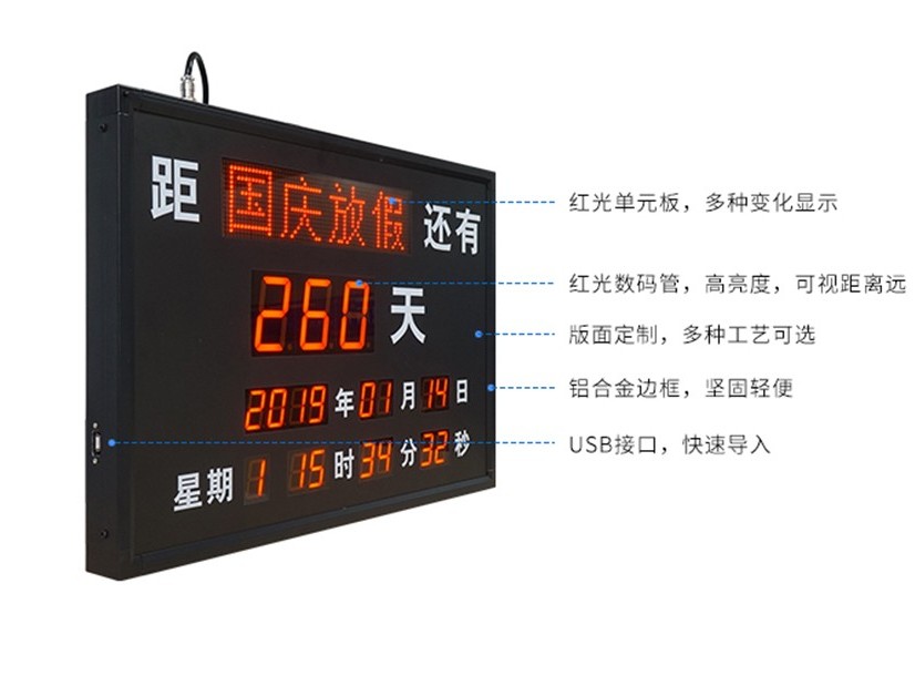 贛鑫活動(dòng)倒計(jì)時(shí)看板采用壁掛式安裝,平均使用壽命長達(dá)10萬小時(shí),具有斷電數(shù)據(jù)保存功能,時(shí)間長達(dá)7天,整機(jī)功率小于20W,咨詢電話18069884716