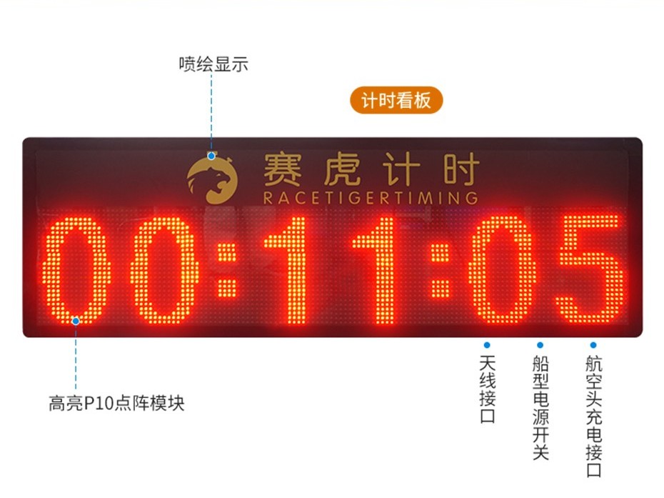 贛鑫馬拉松比賽雙面計時器,產品通過RF433無線通訊,可外接鋰電池與支架安裝,使用壽命長達10W小時。咨詢電話18069884716